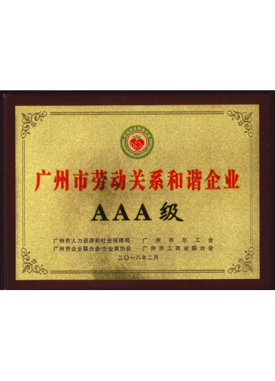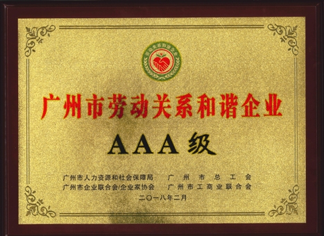 广州市劳动关系和谐企业AAA级