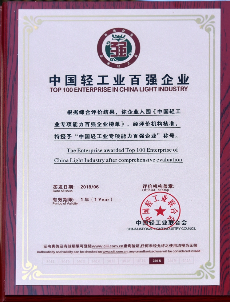 2018中国轻工业百强企业