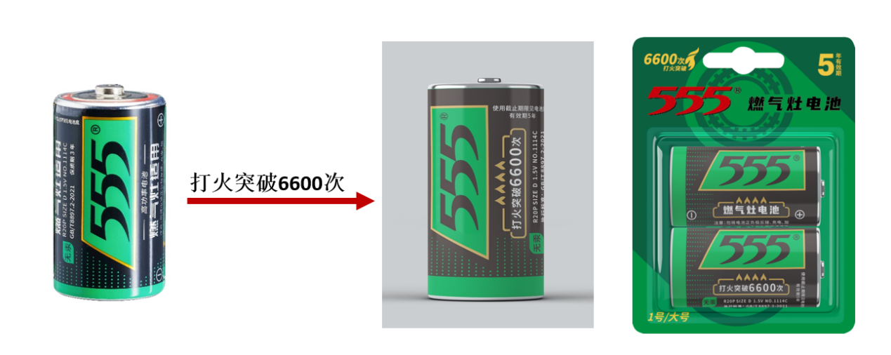 本次高功率系列产品升级,紧紧围绕市场需求,从技术、功能、形象、包装等多维度全面焕新。大号高功率产品升级精准切入燃气灶电池细分赛道,重点突出“打火次数突破6600次”的技术创新,是国内市场同类产品标榜打火次数中最高的一款。五/七号高功率产品结合品牌定位,对产品包装进行视觉统一和优化升级,以“有效期5年”这一个强有力支撑,消除消费者的购买顾虑,进一步提升品牌形象。